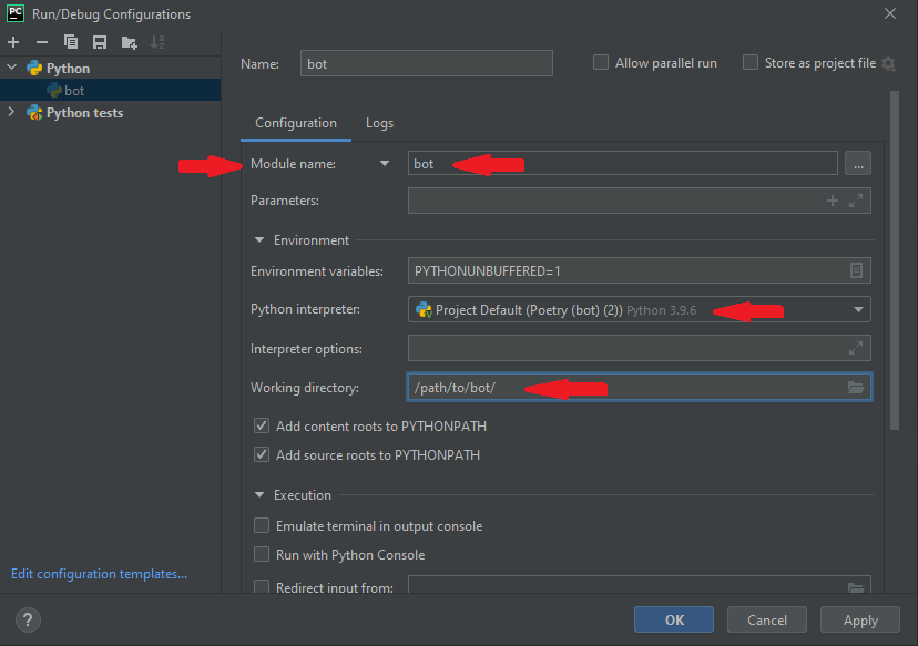 Note: This is only required when you're not configuring the bot automatically